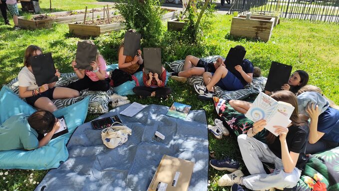 Le beau temps était au rendez-vous, la sieste contée a pu avoir lieu au jardin. Un écrin agréable pour écouter Le souffleur de rêves et réfléchir à ses propres rêves !