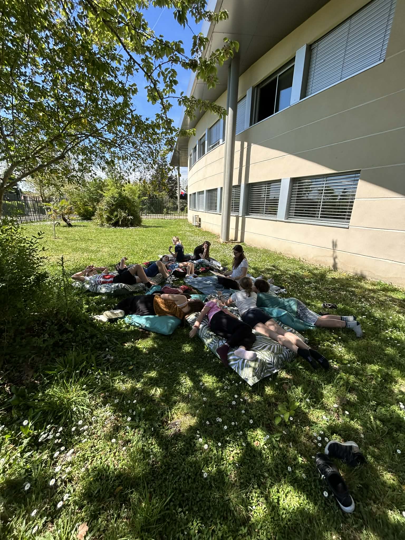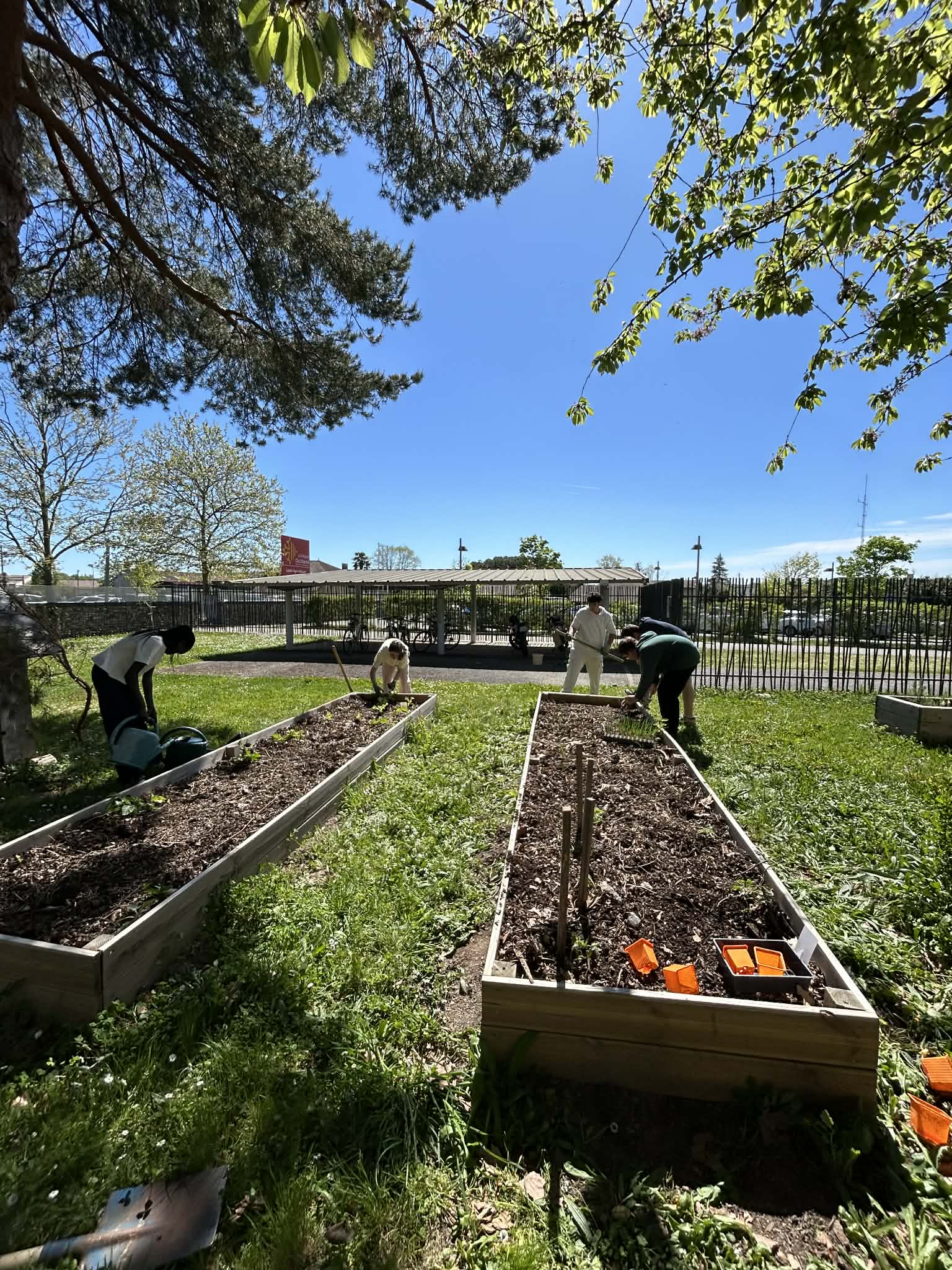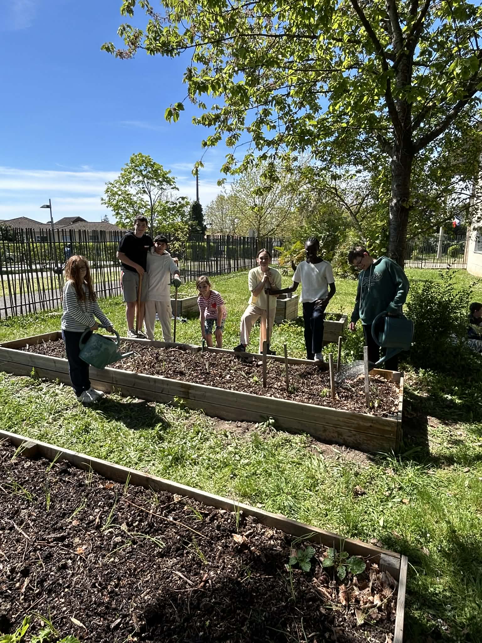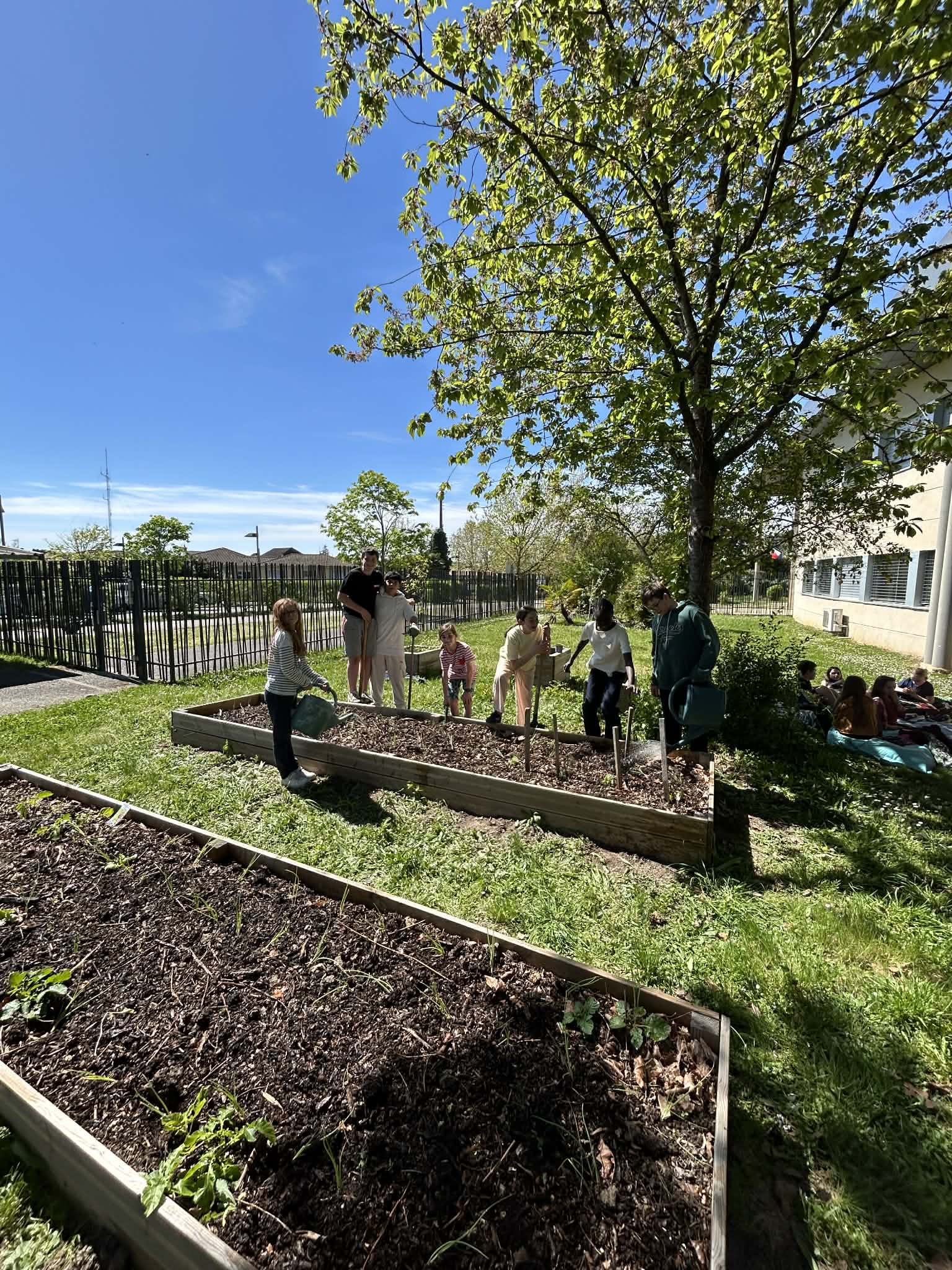 Aujourd'hui un groupe a participé à une lecture à haute voix, animée par Mme Hartz, tandis qu'un autre groupe a planté des plants de légumes au potager.