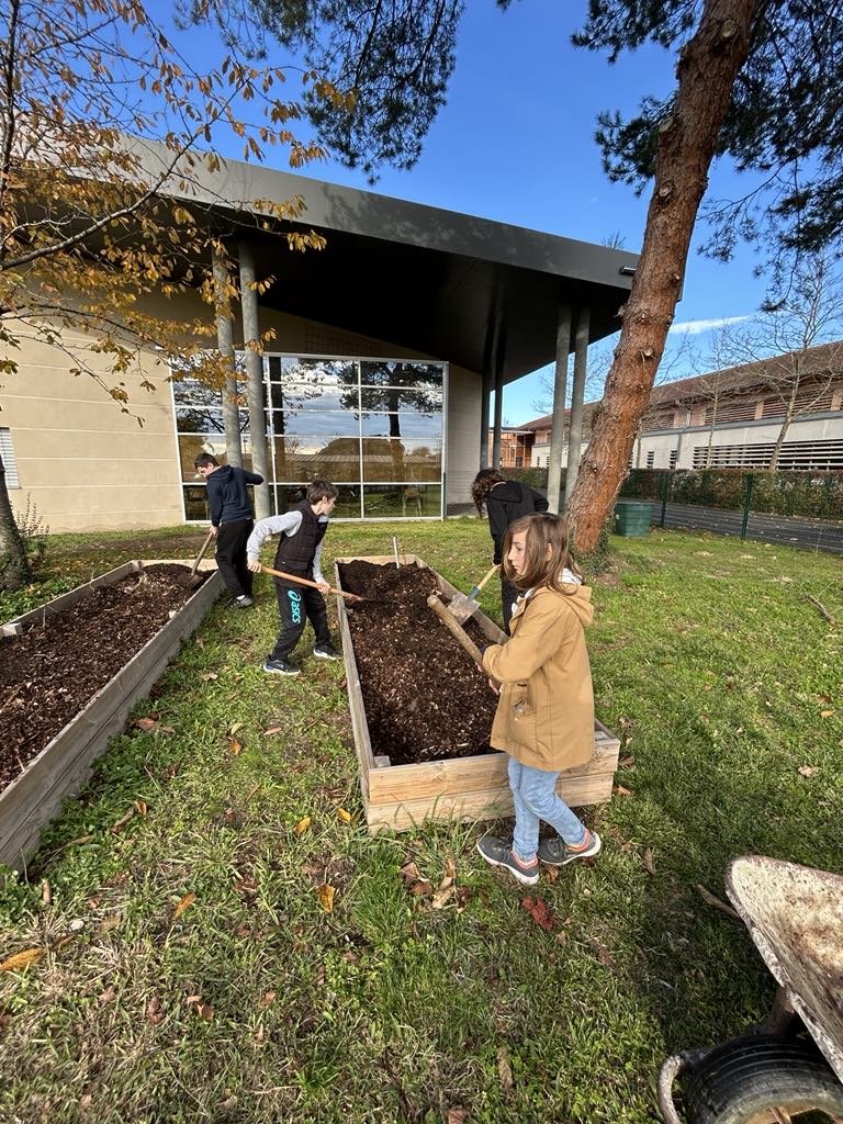 Ainsi, le terreau a été déposé dans les jardinières à légumes du collège.