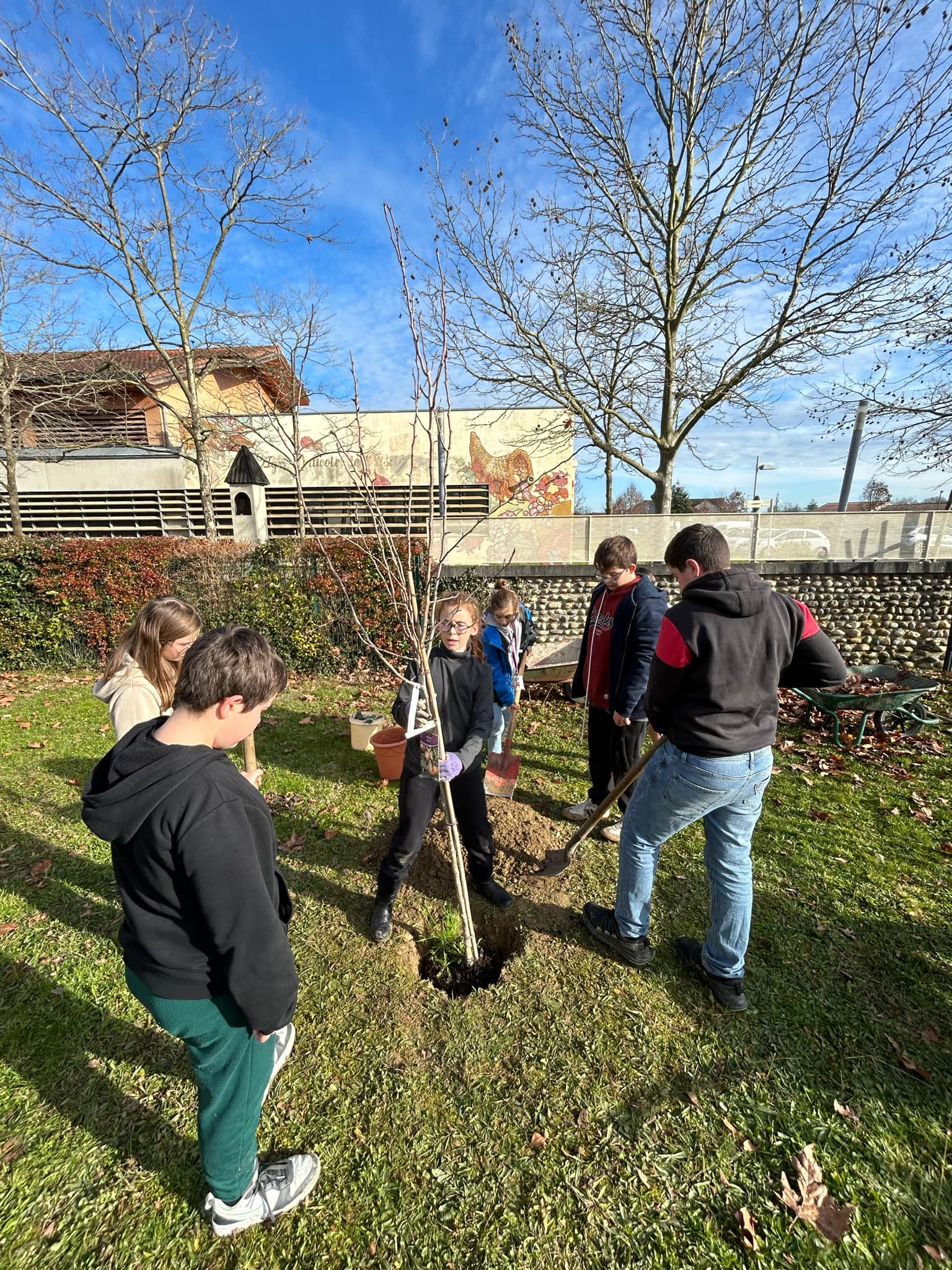 Cette semaine les élèves de l'atelier jardin ont réalisé diverses tâches : plantation de deux arbres fruitiers, arrosage et ramassage de feuilles.